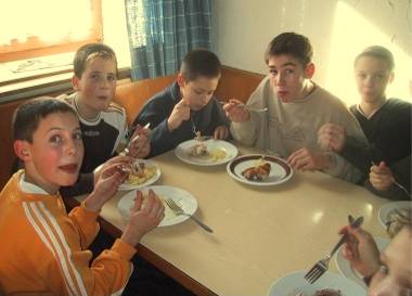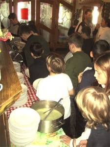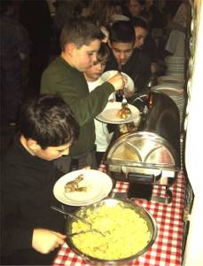 Jeder nimmt sich sein Essen. |